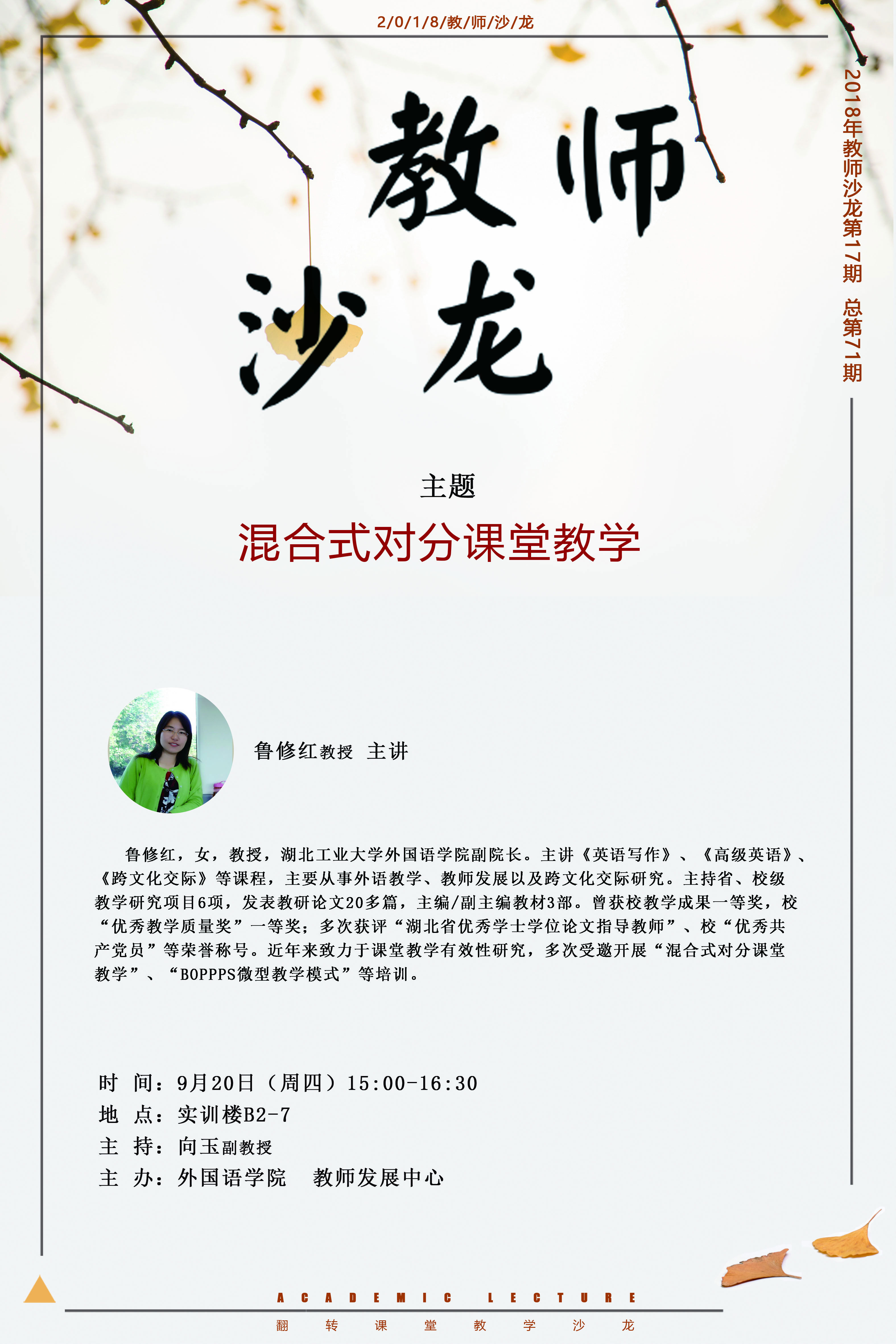 第71期教师(教学方法专题)沙龙活动预告:混合式对分课堂教学